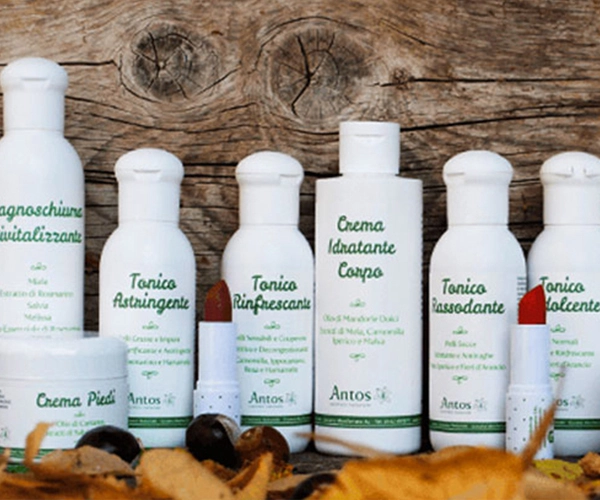La collaborazione con Antos - Cosmesi Naturale, azienda di cosmetica naturale, pietra miliare italiana di questo mercato è nata nel 2015 per progettare le nuove etichette dei loro cosmetici della linea permanente.