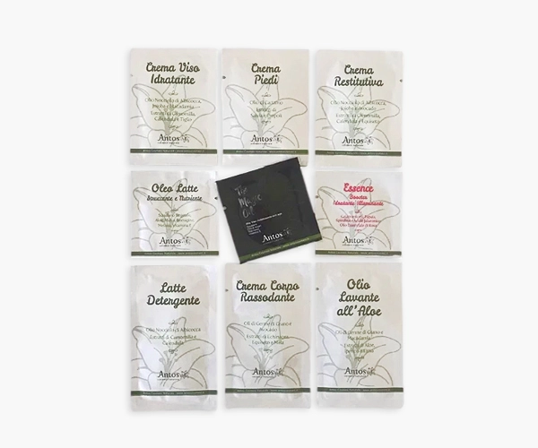 La collaborazione con Antos - Cosmesi Naturale, azienda di cosmetica naturale, pietra miliare italiana di questo mercato è nata nel 2015 per progettare le nuove etichette dei loro cosmetici della linea permanente.